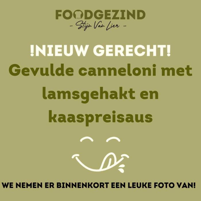 Gevulde cannelloni met lamsgehakt en kaaspreisaus