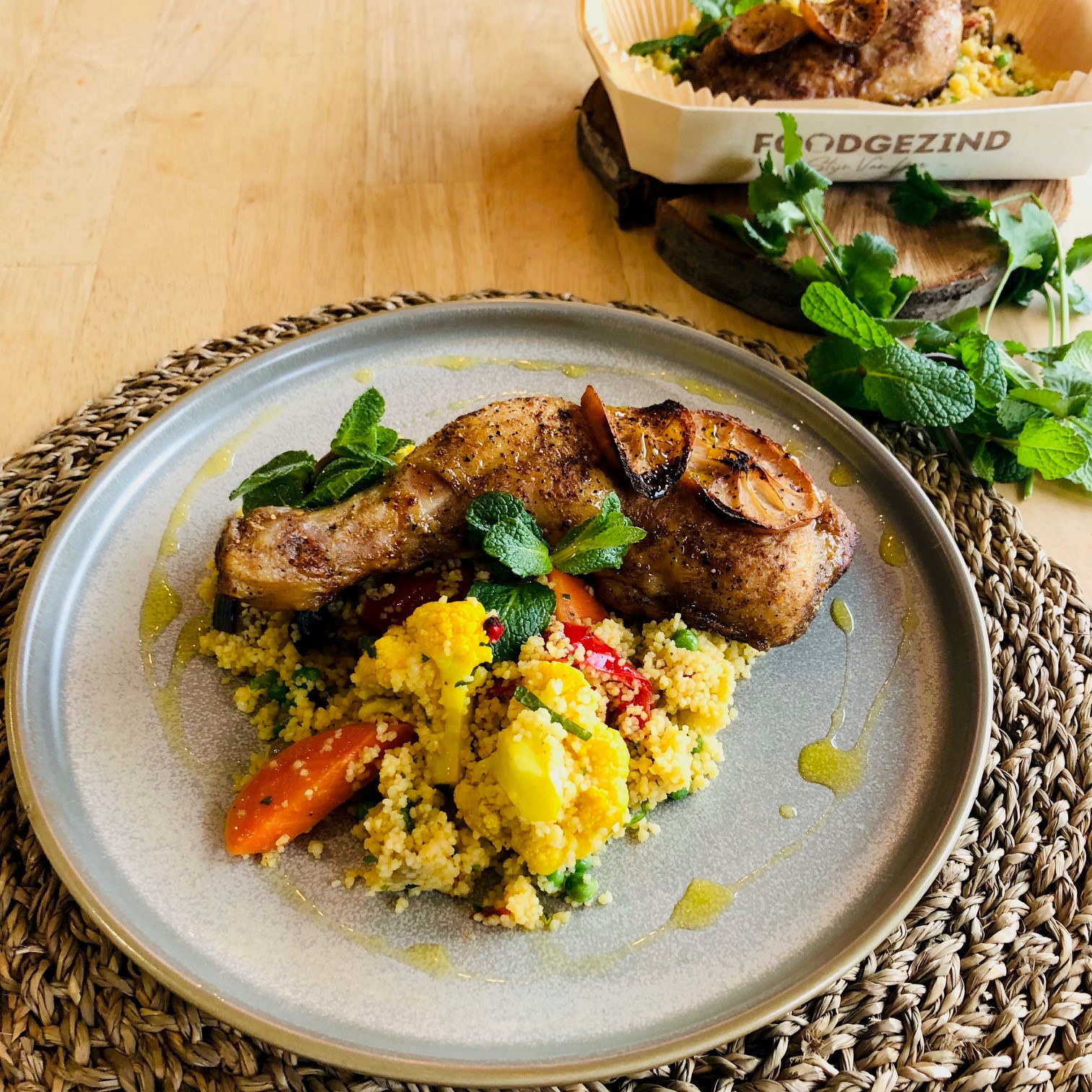 Marokkaanse kip met couscous, gekonfijtte citroen en seizoensgroenten