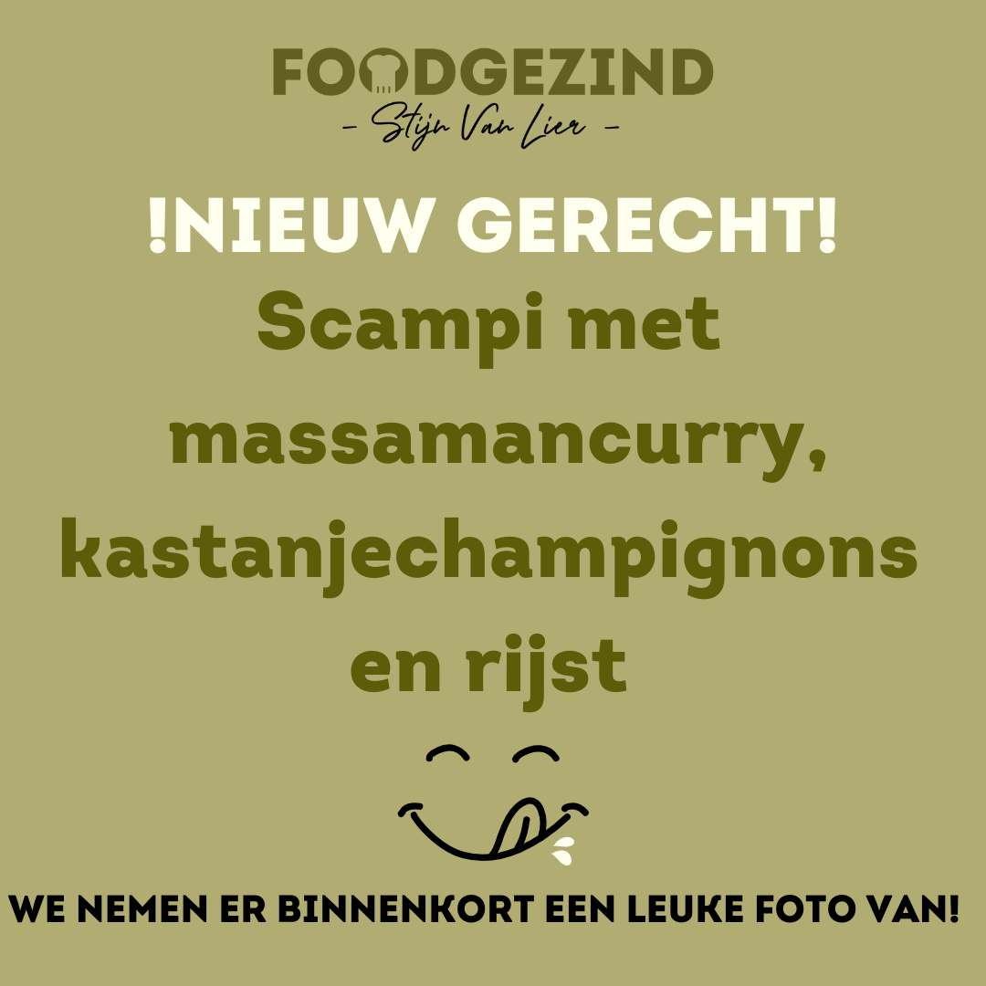 Scampi met licht pikante massamancurry, kastanjechampignons en rijst