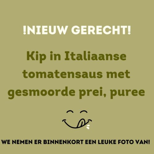 Kip in Italiaanse tomatensaus met gesmoorde prei en puree