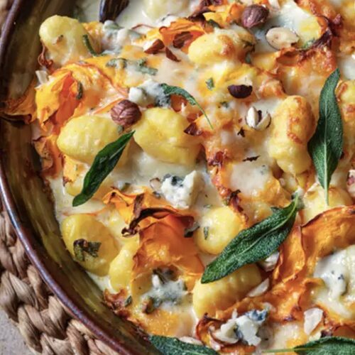 Ovenschotel met gnocchi, salie, pompoen, gorgonzola