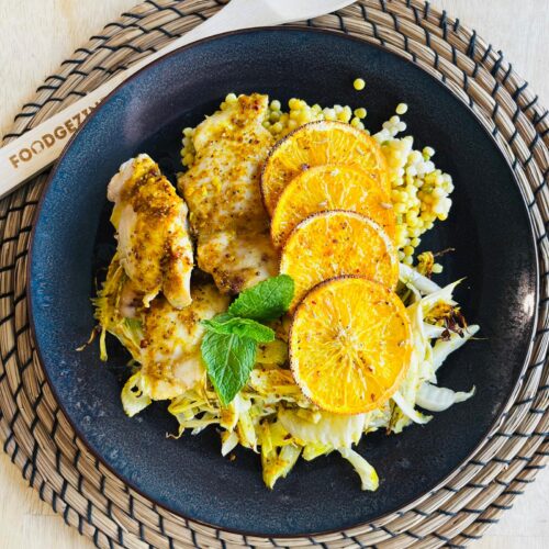 Geroosterde kipdijfilet met venkel en sinaas, parelcouscous
