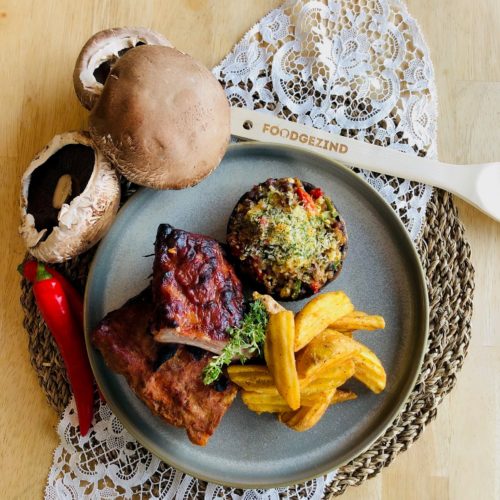 Kabeljauw met zoete aardappelpuree en gebakken paddenstoelen