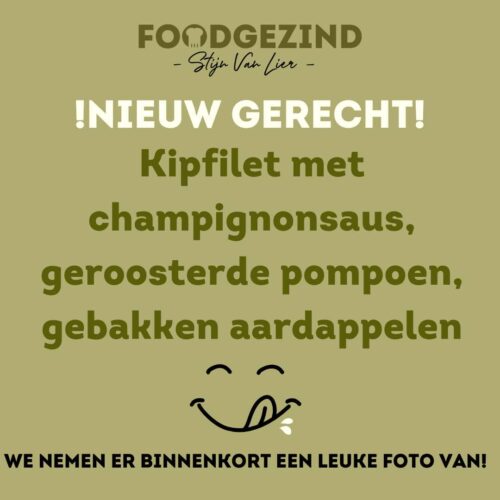 Kipfilet met champignonsaus, geroosterde pompoen, gebakken aardappelen
