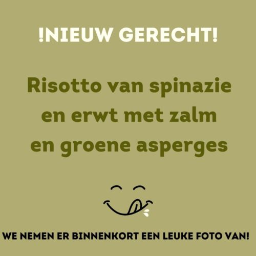 Risotto van spinazie en erwt met zalm en groene asperges