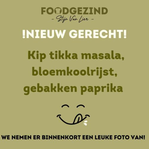 Kip tikka masala, bloemkoolrijst, gebakken paprika