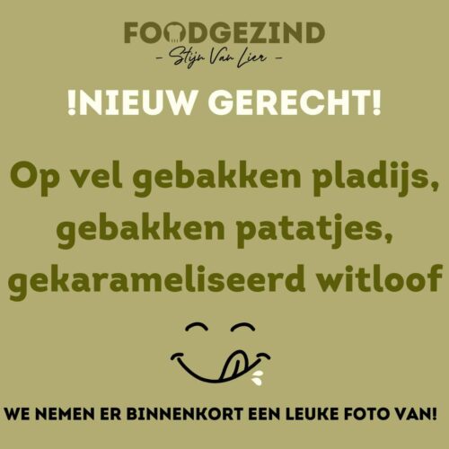 Op vel gebakken pladijs met gebakken patatjes en gekarameliseerd witloof