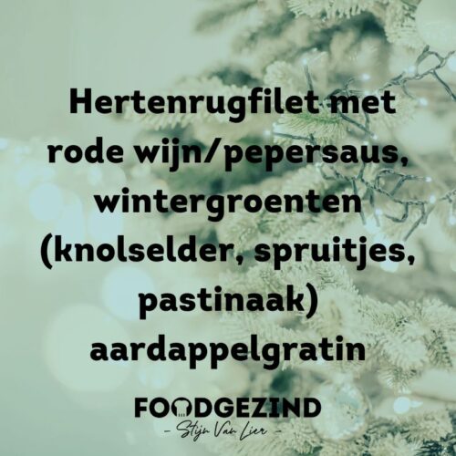 Hertenrugfilet met rode wijn/pepersaus, wintergroenten (knolselder, spruitjes, pastinaak) aardappelgratin 25/12